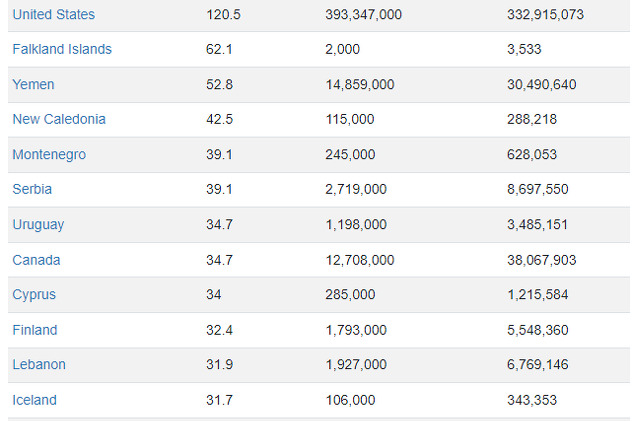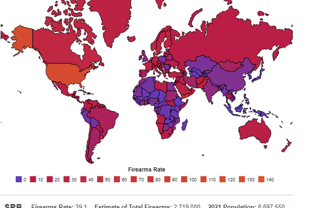 Ovo su podaci istraživanja nezavisne organizacije “World population review” sa sjedištem u Sjedinjenim državama u kojima, između ostalog, stoji da su najnaoružanija nacija na svijetu Amerikanci sa 120,5 komada oružja na stotinu stanovnika. Prema istim ovim podacima Bosna i Hercegovina zauzima 13. mjesto u svijetu sa 31,2 komada civilnog naoružanja na stotinu stanovnika.