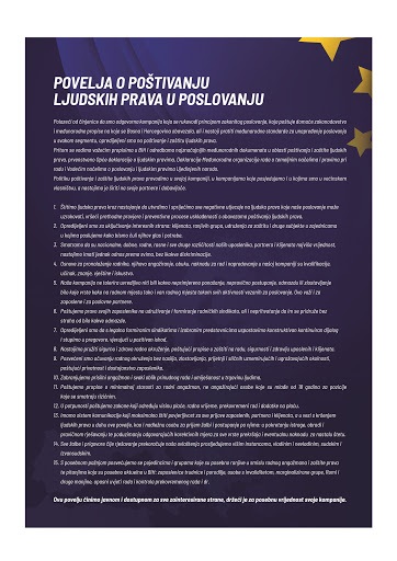 Povelja se sastoji od 15 tačaka koje se tiču sprječavanja narušavanja ljudskih prava, uključivanja zainteresiranih strana radi uvažavanja njihovog glasa i potreba, opredijeljenosti za jednak odnos prema svima, očuvanja radnog okruženja, zabrane prinudnog rada i trgovine ljudima, prava na sistem komunikacije koji maksimalno štiti povjerljivost za sve prijave zaposlenih.