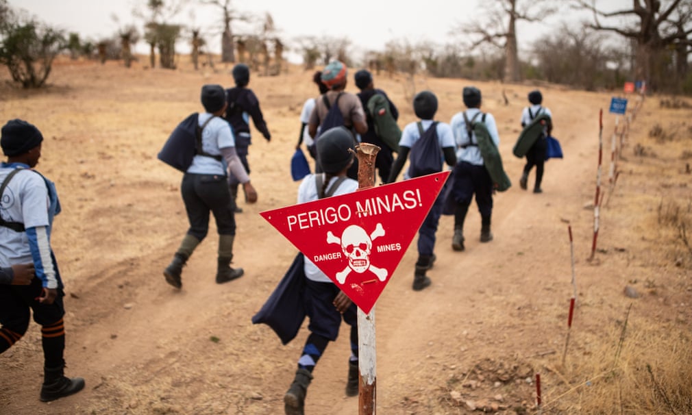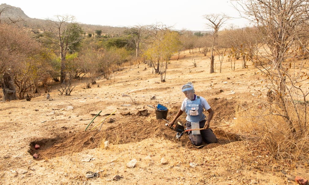 Ali prošlog januara, u selu je Halo Trust, britanska dobrotvorna organizacija protiv mina, osnovala malu armiju sa 18 angolanskih čistača mina. Nakon što su iz tog područja uklonili 197 mina i 50 predmeta neeksplodiranih ubojnih sredstava, nadaju se da će posao dovršiti sljedećeg mjeseca – kada bi zemljište trebalo biti vraćeno seljanima.