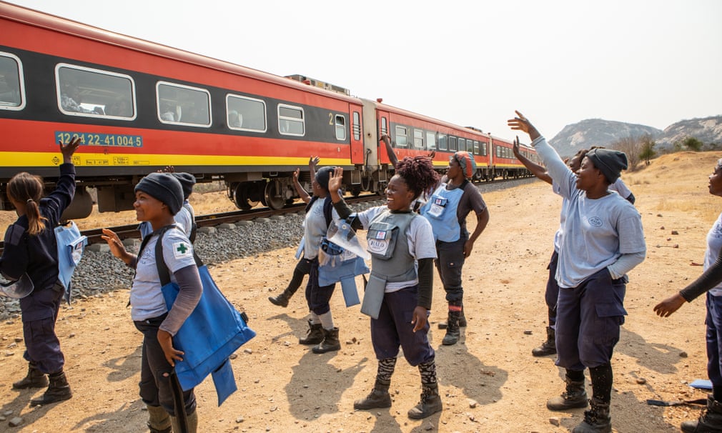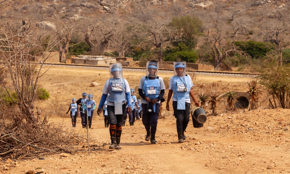 Žene u kampu Cabio ustaju u pet, navlače čizme i uniforme i staju u red ispred šatora za registraciju, lica su im i dalje jutarnje sanjiva dok odgovaraju na prozivku (ja sam s njima provela noć u kampu, novinarka The Guardiana Rachel Cooke op.a.). Pet minuta kasnije, oni i njihova zaštitna oprema nalaze se u zadnjem dijelu kamiona, a nekoliko trenutaka nakon toga nalaze se kod željezničke pruge. Iako veoma dobro istrenirane – svaka je pohađala višemjesečni tečaj deminiranja – svaka smjena započinje demonstracijom dijela procesa: podsjetnik na stalno prisutne opasnosti posla koji ih čeka. Pored željezničke pruge nalaze se i kola hitne pomoći.