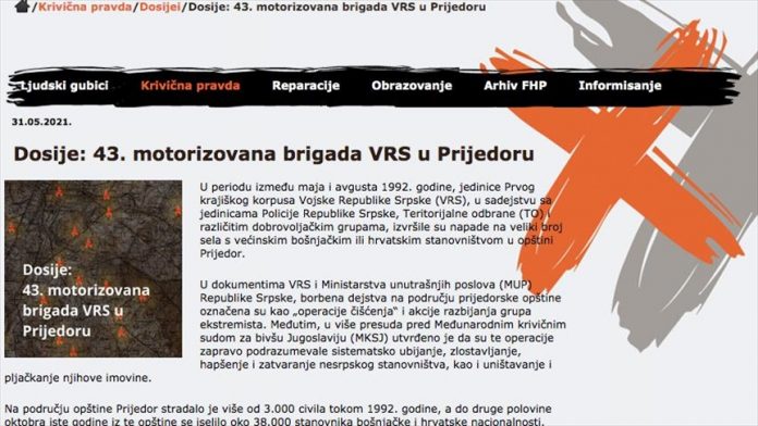 Fond za humanitarno pravo (FHP) u Srbiji podneo je krivične prijave protiv komandanta i zamenika komandanta 43. motorizovane brigade, jedinice Prvog krajiškog korpusa Vojske Republike Srpske (VRS), Vladimira Arsića i Radmila Zeljaje, kao i još nekoliko lica za zločine počinjene u Prijedoru tokom rata u BiH, rečeno je na predstavljanju četrnaestog dosijea FHP-a pod nazivom “43. motorizovana brigada VRS u Prijedoru”, javlja Anadolu Agency (AA).