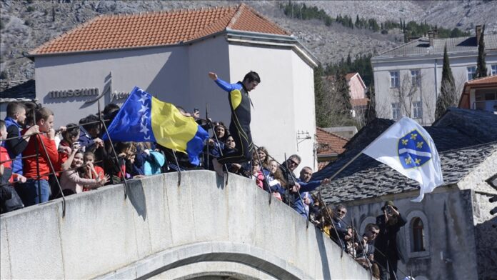 Klub skakača u vodu “Mostari“ obilježio je Dan nezavisnosti Bosne i Hercegovine tradicionalnim skokom sa Starog mosta, javlja Anadolu Agency (AA).
