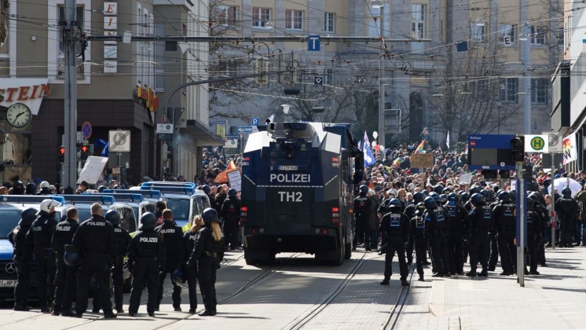 Oko sedam hiljada ljudi učestvovalo je na protestima u Kaselu, a pored sukoba s policijom bilo je i nekoliko prepucavanja s kontra-demonstrantima.