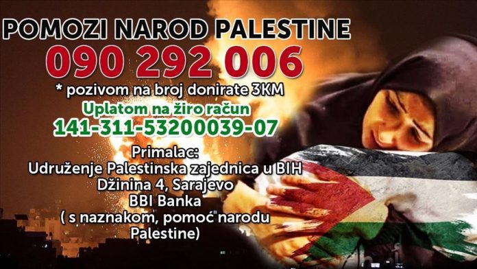 “Ovim putem podsjećamo da je Udruženje palestinska zajednica u BiH pokrenulo i humanitarni broj 090 292 006 – putem kojeg građani BiH doniraju 3KM. Pomoći možete i direktno uplatom na žiro račun kod BBI Banke, broj računa : 141-311-53200039-07 (primalac Udruženje Palestinska zajednica u BiH, Džinina 4, Sarajevo – s naznakom ‘Pomoć za Palestinu'”, zaključeno je u saopćenju.